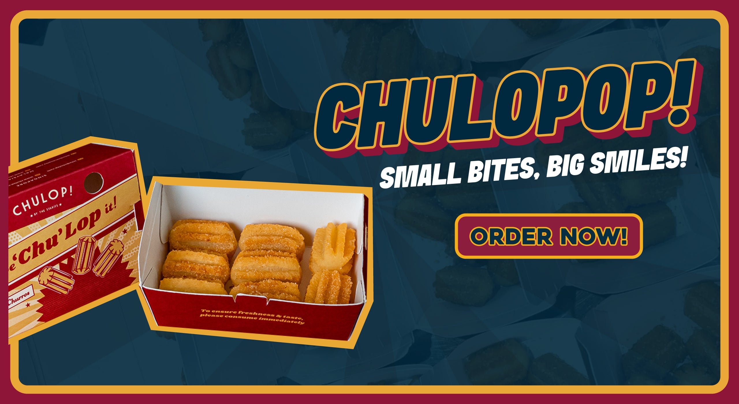 Chulop! is Singapore's very own snack bar which specialises in the sale of churros, perfectly complemented with artisanal premium dips.